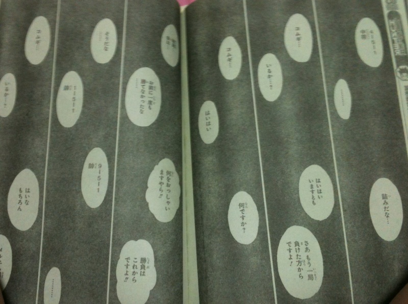 バクマンがミステリっぽくて展開読めない。七峰くん絡んでんの? やっぱり子がいるとゆっくり更新に迎えませんな。 携帯ぽちぽちも躊躇うからね。 昔に比べて、ネットでもリアルでもやる事やりたい事増えてるから時間が足りん。